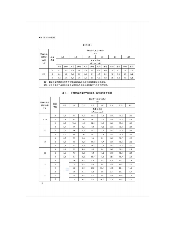 容积式空气压缩机能效限定值及能效等级